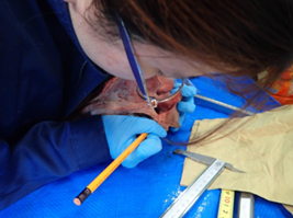 骨への関心からクジラを調べ、骨の謎を解き明かすためにはクジラがもっともいい研究対象だと思ったことから鯨類学研究室に入った山田さん。