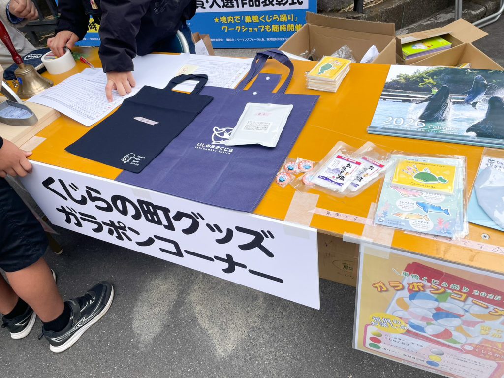全国のくじらの町紹介コーナーには、トートバッグやエコバッグ、カレンダー、缶バッジなどのくじらグッズが当たる「くじらガラポン」も登場。子どもから大人まで大勢が列をなして、抽選機回しを楽しんでいました。