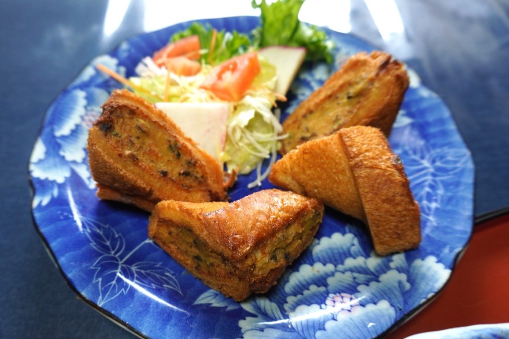 長崎の郷土料理「ハトシ」は、本来エビなどのすり身を食パンで挟み、油で揚げた料理です。とんぼではこのハトシに、鯨カツを作るときにでた“切り出し”で作った鯨のしぐれ煮を加えた“とんぼ流”の一品となっています。パンで鯨を挟み、一晩寝かせてから丁寧に揚げることで、外はカリッと、中はふっくらとした食感に。鯨の旨みと香ばしさが重なり合う、同店を代表する人気メニューです。