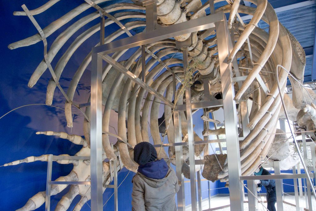 2025年12月23日、鯨ギャラリーに展示されている巨大なクジラの全身骨格標本を清掃する『すす払い』イベントが開催されました。