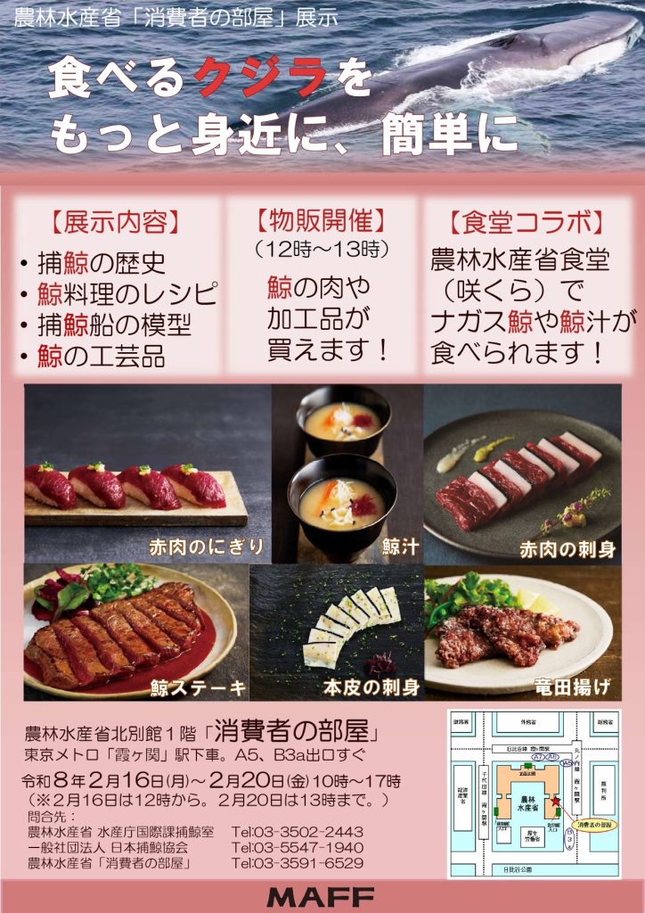 農林水産省「消費者の部屋」にて、クジラの展示・販売イベントが開催されます。