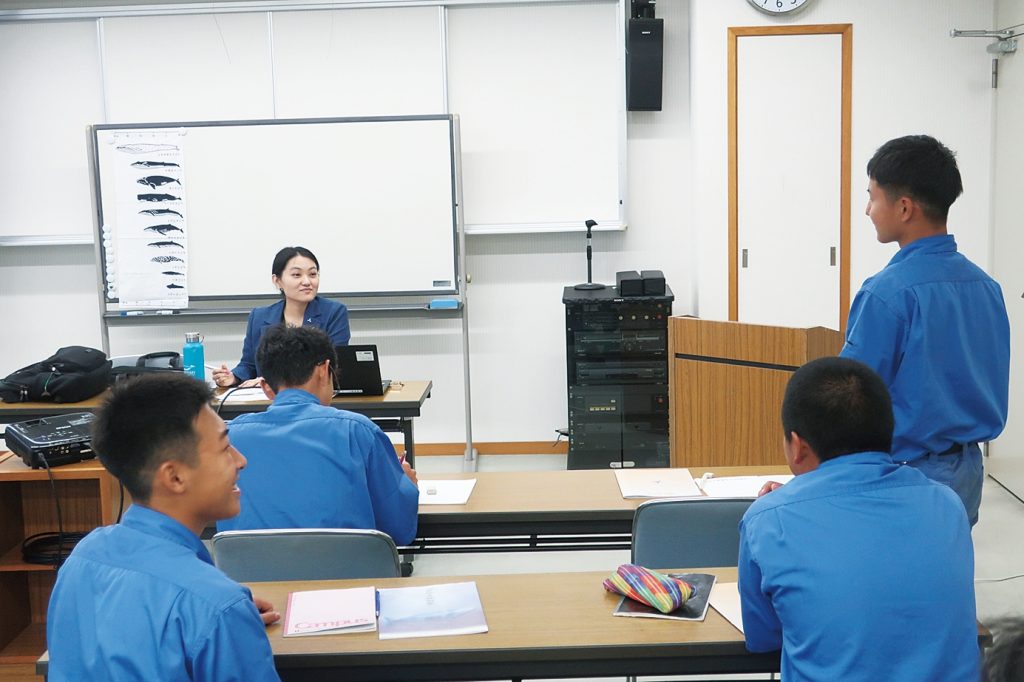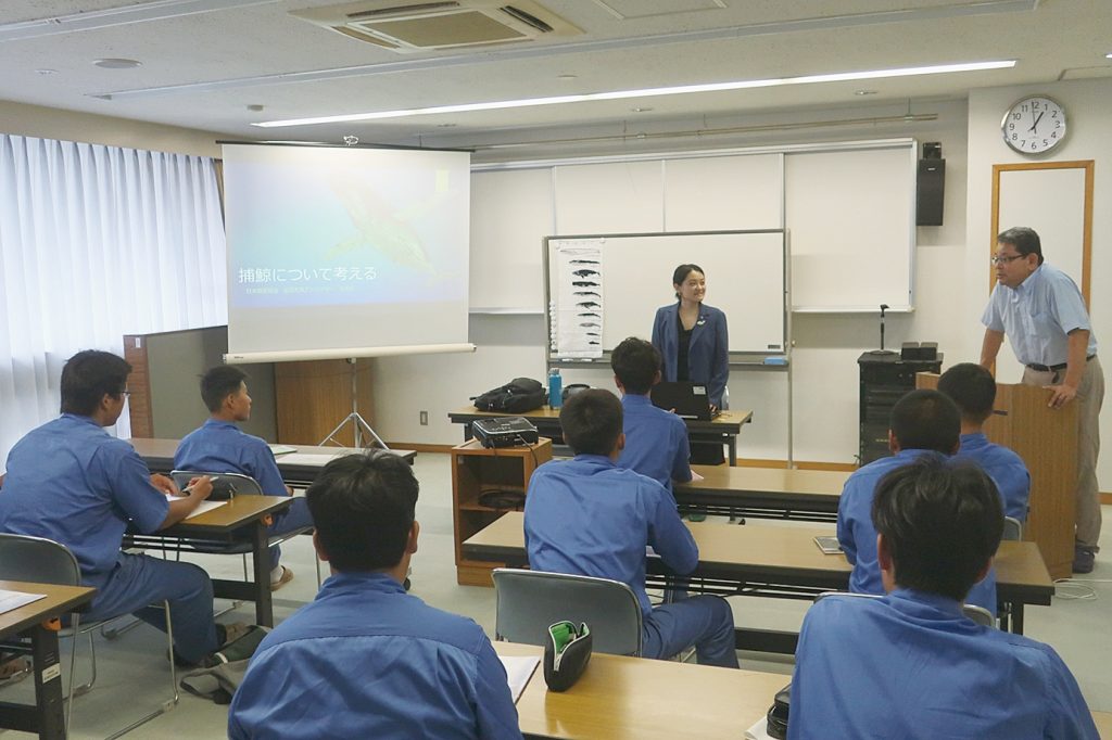 当日は日本捕鯨協会で国際対策を担当する松田彩アドバイザーが、同学園の生徒11人に写真や動画なども交えて分かりやすく捕鯨の現況などを話した。生徒との対話を通して説明する姿勢は好評で、将来の水産業を担う意欲的な生徒は熱心に授業に耳を傾けた。