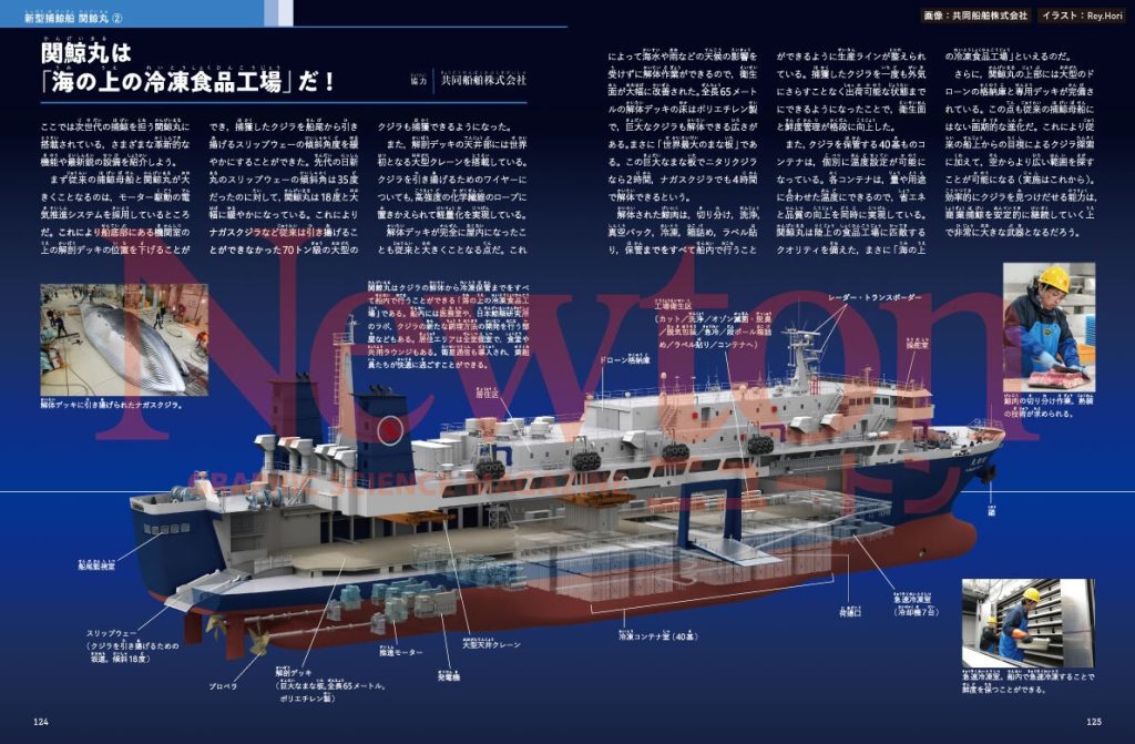 また、人類とクジラが歩んできた深い歴史や、2019年に再開された商業捕鯨の最前線、そして世界唯一の捕鯨母船「関鯨丸」の技術までを網羅。高タンパク・低カロリーな健康食材としての魅力や資源調査の現状についても詳しく解説しています。