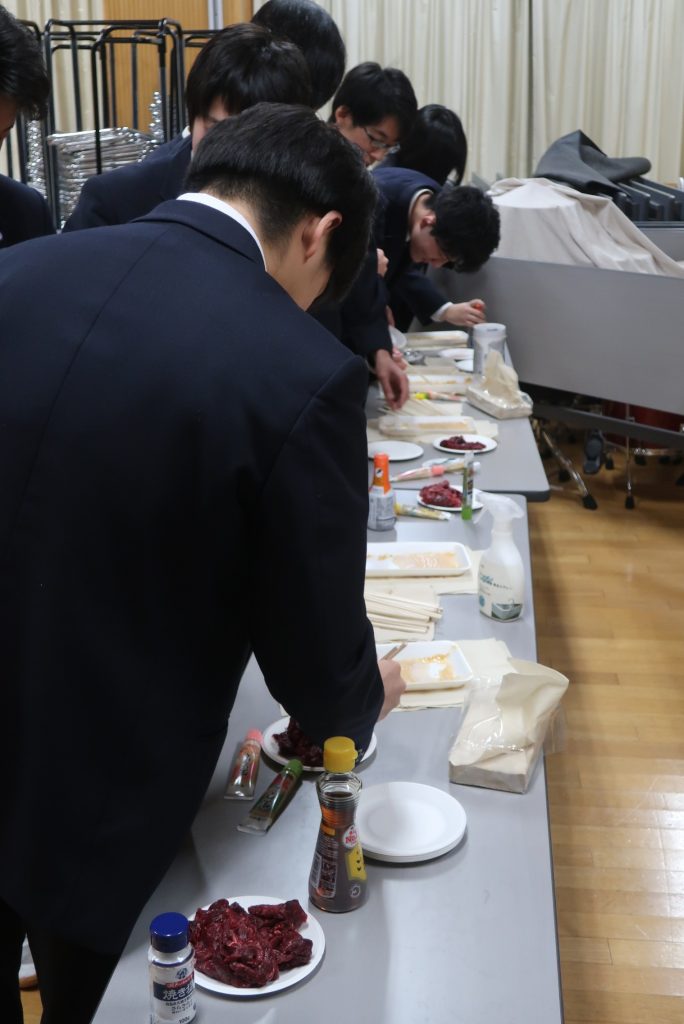 松田氏は、「国際的な捕鯨を巡る対立は現在も平行線のまま。クジラを捕らなければ生物多様性を守れるともいえない。私は捕鯨を日本人としてのアイデンティティーの一つと感じている。捕鯨は日本文化の一つ。皆さんに鯨肉を食べてもらい、捕鯨が存続できればと思う」と話した。2回の授業とも、最後に生徒が謝辞を述べた。
